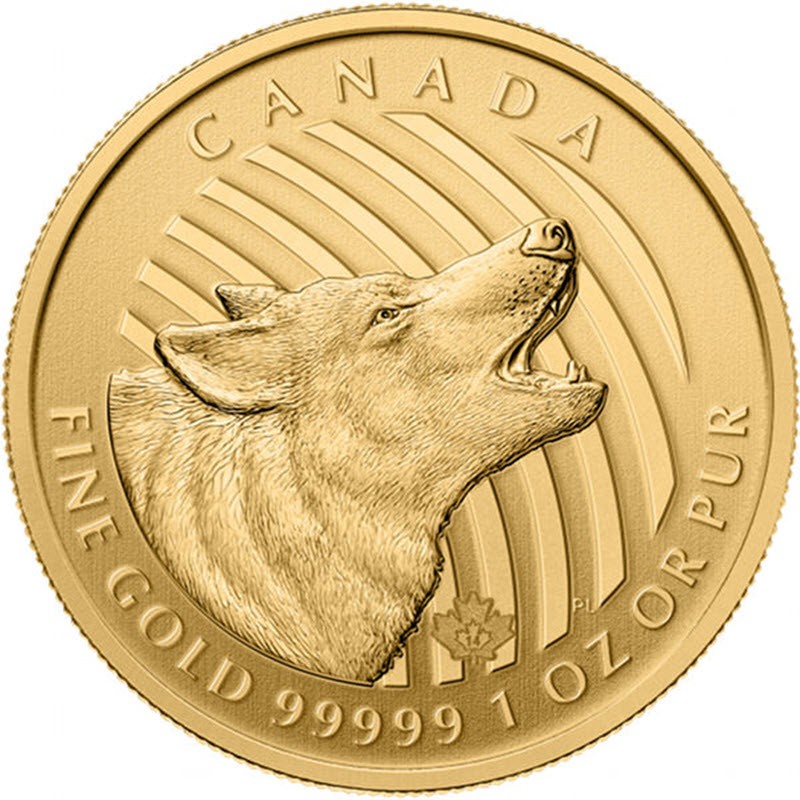 Монета из чистого золота пробы 99999 "Воющий волк" является первым выпуском в новом ряду "Зов природы" Королевского Канадского монетного двора.