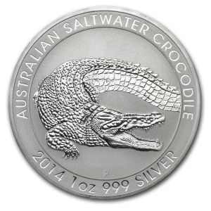 Серебряная инвестиционная монета Австралии Морской Крокодил.