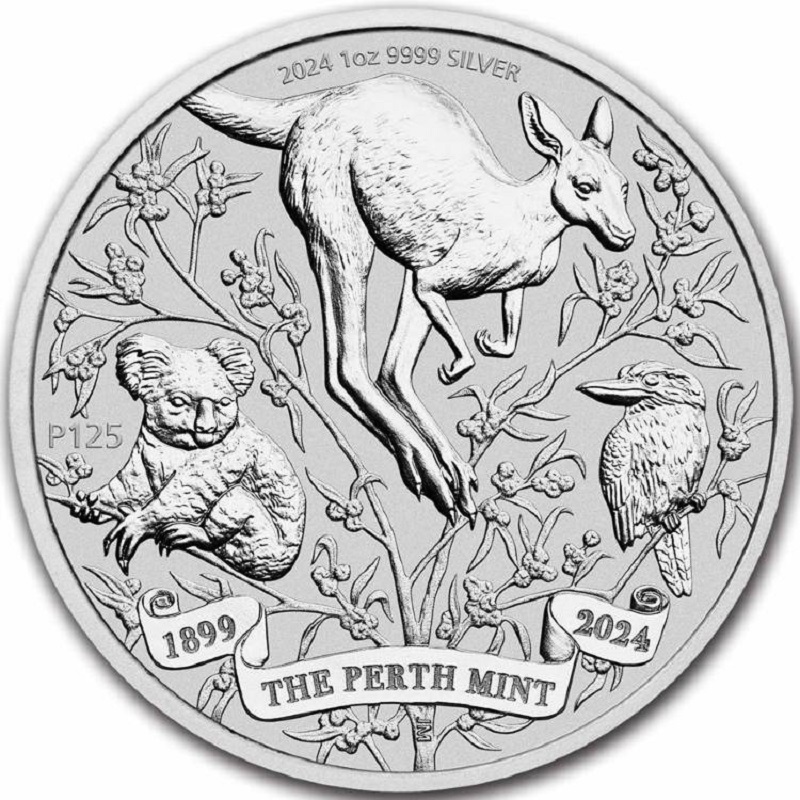 Пертский монетный двор открылся 20 июня 1899 года в разгар золотой лихорадки в Западной Австралии. В рамках празднования 125-летия Пертского монетного двора было отчеканено всего 150 000 серебряных монет весом в 1 унцию с изображением кенгуру, кукабарры и коалы.