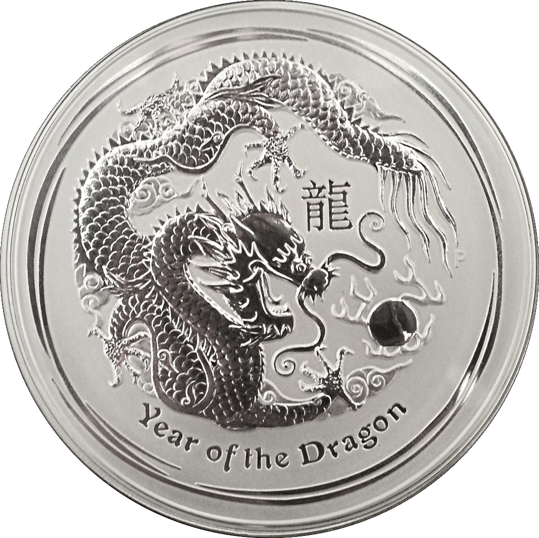 На реверсе изображен символ 2012 года - Дракон, китайский иероглиф, обозначающий соответствующее животное, справа буквой "P" обозначен Пертский монетный двор.
