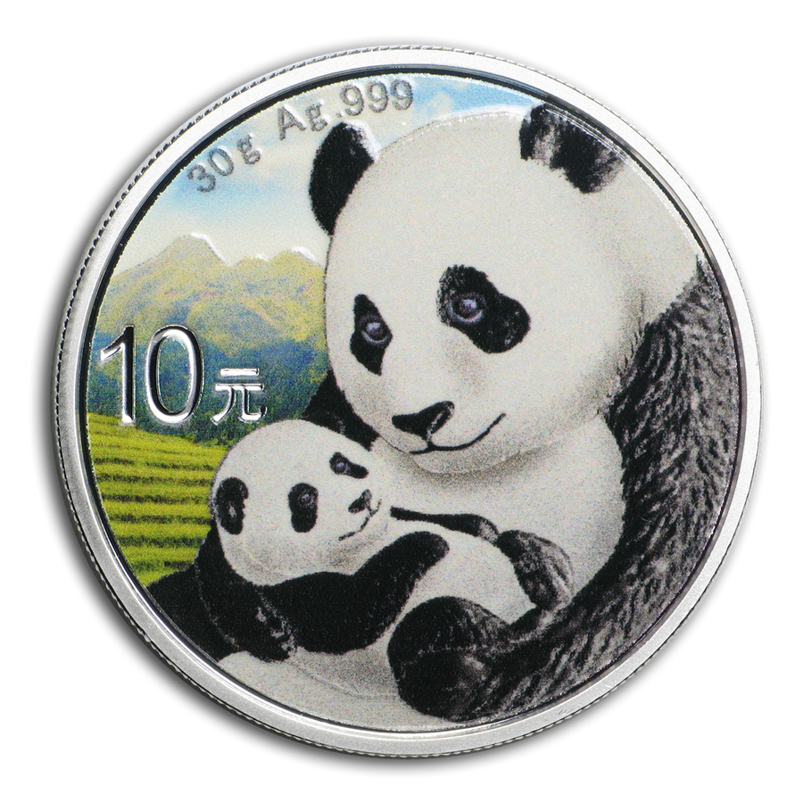 Серебряная монета Китая - Панда (с цветным изображением) 2019 г., 30 г чистого серебра (Проба 0,999)
