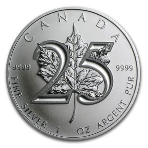 Монета посвящена 25-летию выпуска канадских серебряных инвестиционных монет.