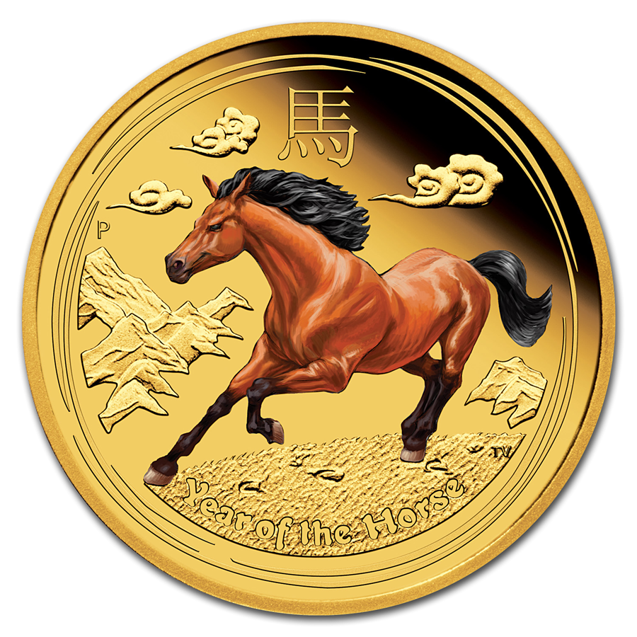 Золотая монета Австралии Лунар II "Год Лошади" весом в 1/10 унции.