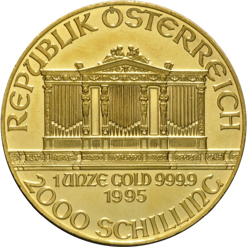 Золотая монета Австрии "Филармоникер 2000 шиллингов" 1989-2001 г.в., 31.1 г чистого золота (Проба 0,9999)