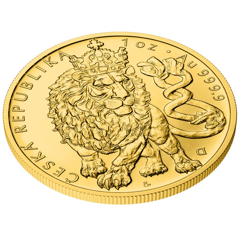 Золотая  инвестиционная монета «Чешский лев» весом в 1 унцию выпускается с 2017 года, в 2024 году она изменила дизайн. В 2026 году отметила свой 10-летний юбилей и получила новый дизайн от Войтеха Достала (Vojtěch Dostál). У нее качество BU. Поставляется в блистере. Тираж: 1500 штук.