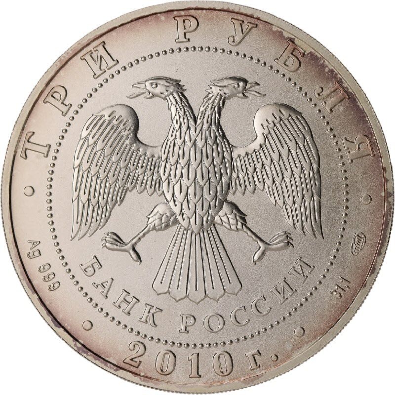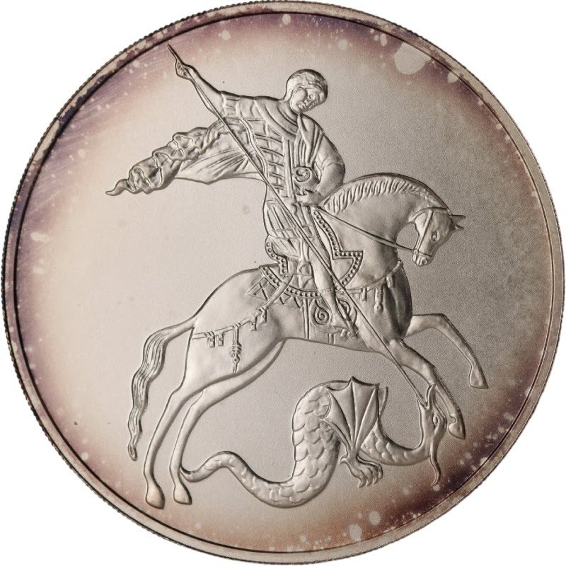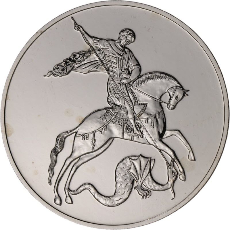 Серебряная монета России "Георгий Победоносец" (с пятнами, молочкой и механическими повреждениями), 31.1 г чистого серебра (проба 999)