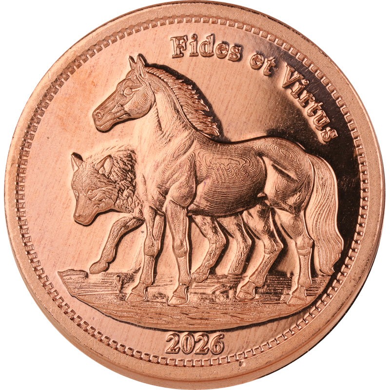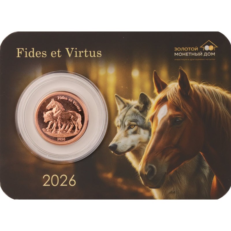 На реверсе изображены Волк и Лошадь, идущие вместе. Вверху надпись: Fides et Vertus (Верность и Доблесть). Внизу: 2026 (год чеканки).