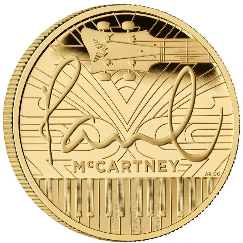 На реверсе изображены ключевые символы карьеры Маккартни, в том числе его культовое «Волшебное пианино» и скрипичная бас-гитара Höfner. Дизайн дополняют логотип Wings и подпись Пола Маккартни. Справа у канта инициалы дизайнеров AR DO (Andrew Ross, Deborah Osborne).