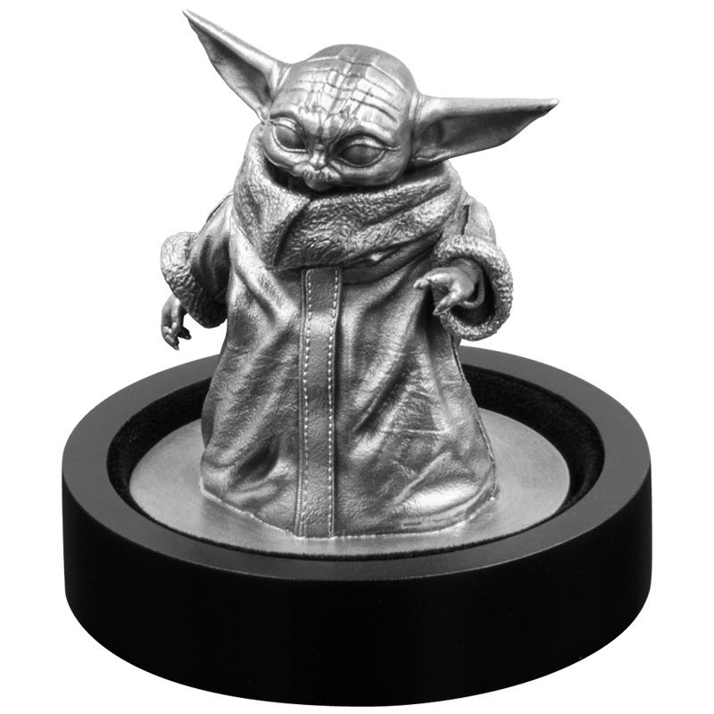 Эта чудесная серебряная миниатюра весом 150 грамм от Новозеландского Монетного Двора (NZ Mint) из серии «Звездные войны» посвящена Малышу Грогу. Работа 3D-дизайнер Алехандро Перейра Эскурра (Alejandro Pereira Ezcurra). У неё размер 55 Х 50 мм и качество античной отделки. Поставляется в оригинальном футляре «Звездных войн™». Тираж: 1000 штук.