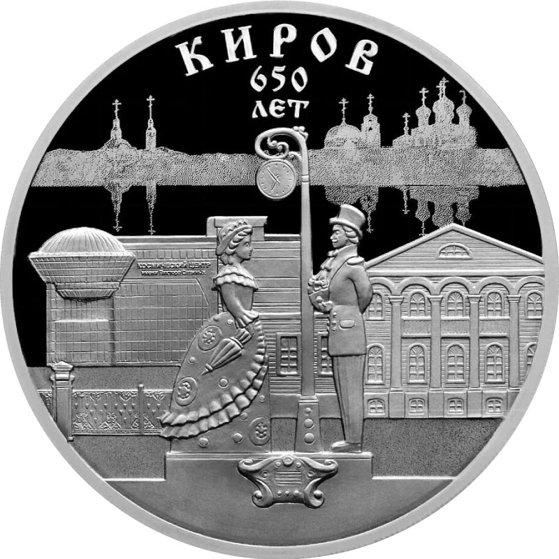 Российская памятная серебряная монета 2024 г. Банка России посвящена 650-летию основания г. Кирова. Тираж: 3000 штук.