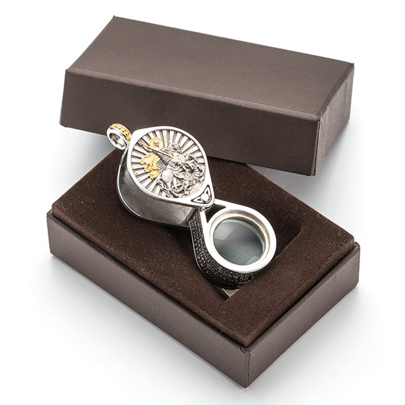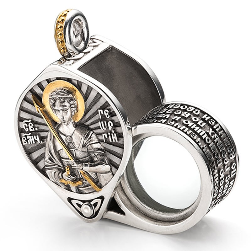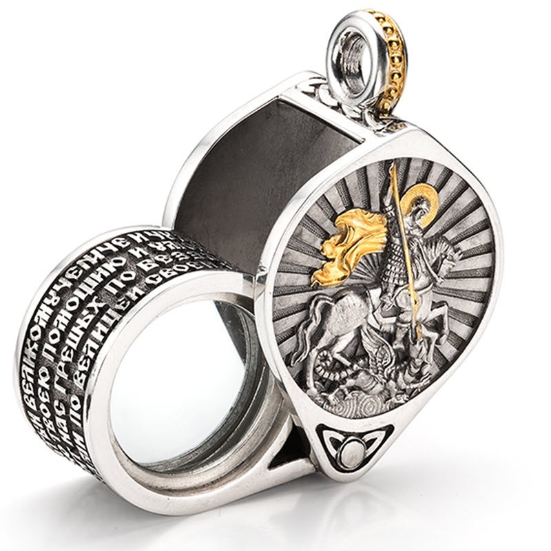 Ювелирная лупа «Георгий Победоносец» (с позолотой), 48 г стерлингового серебра