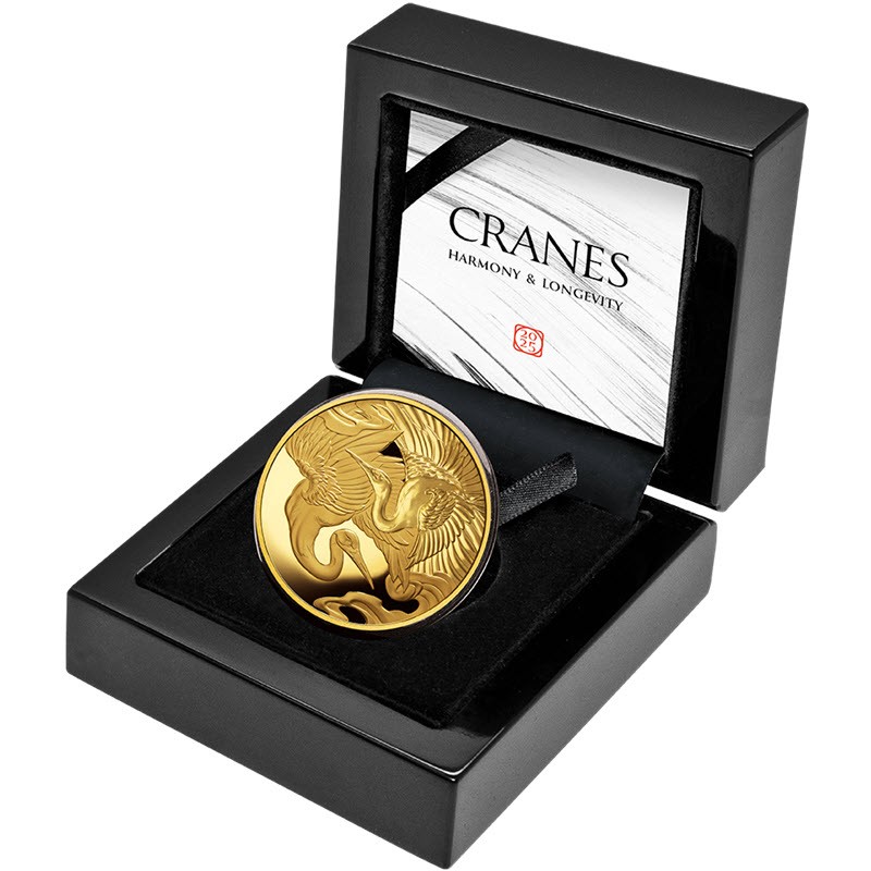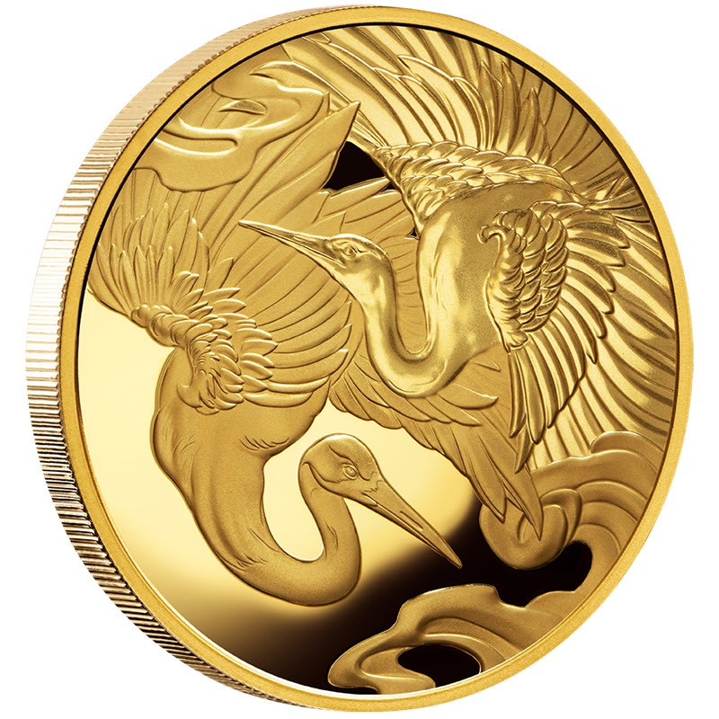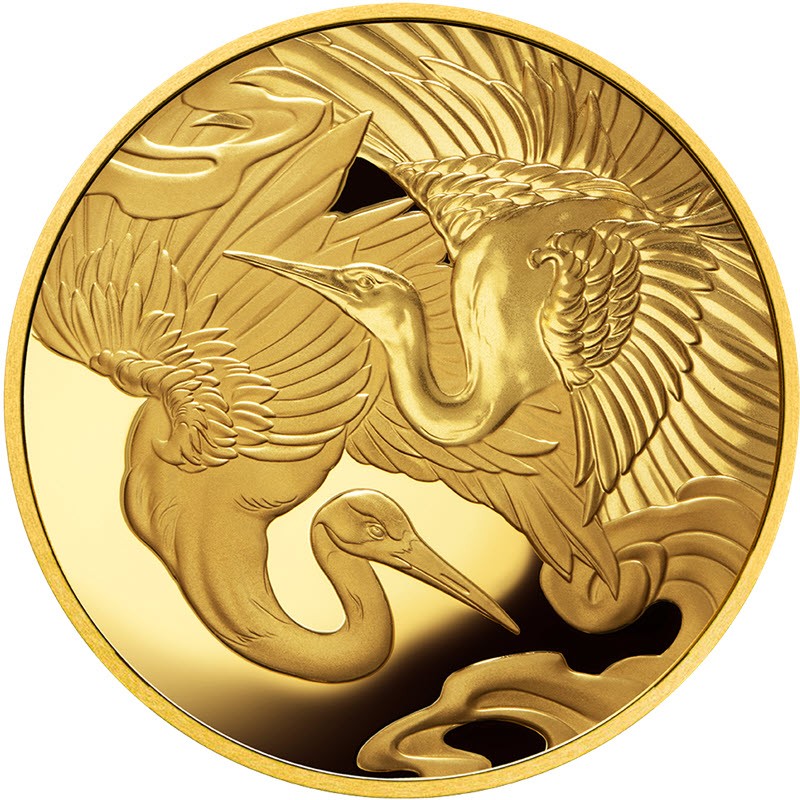 Золотая монета весом 1 унция посвящена журавлю. У нее качество пруф. Поставляется в оригинальном футляре с сертификатом подлинности. Тираж: 50 штук.