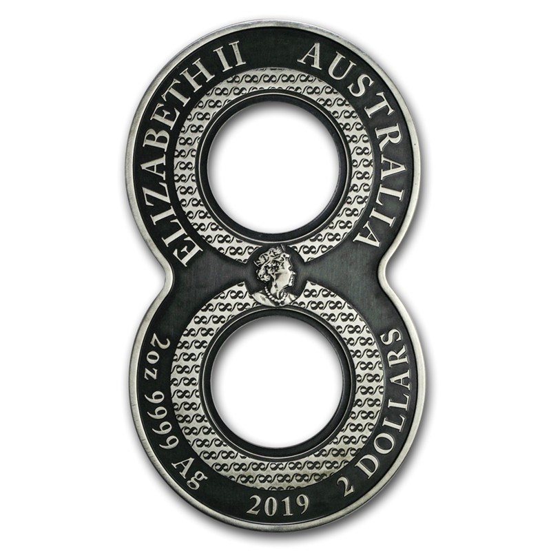 Серебряная монета Австралии "Восьмерка - Рыбки Кои" 2019 г.в., 62,2 г чистого серебра (Проба 9999)