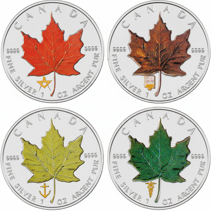 Набор серебряных монет, символизирующий времена года, от Королевского Монетного двора Канады.