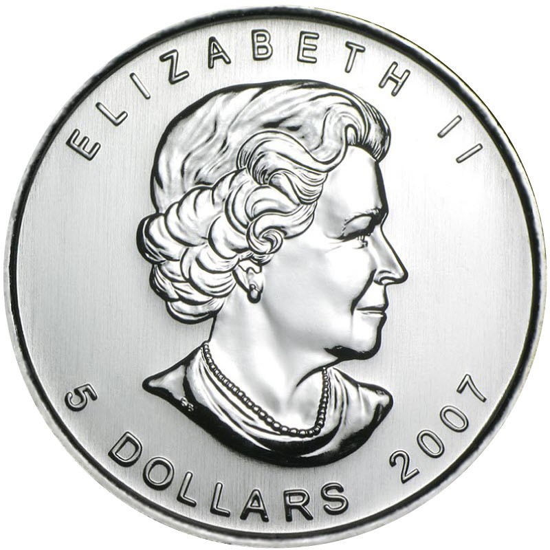 На аверсе помещено изображение профиля королевы Елизаветы II. Сверху надпись ELIZABETH II — Елизавета II. Внизу по ободу надпись 5 DOLLARS и год выпуска монеты.