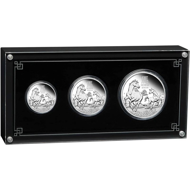 Набор из 3-х серебряных монет Австралии "Год Лошади" 2026 г.в. (пруф), 108.86 г чистого серебра (проба 9999)