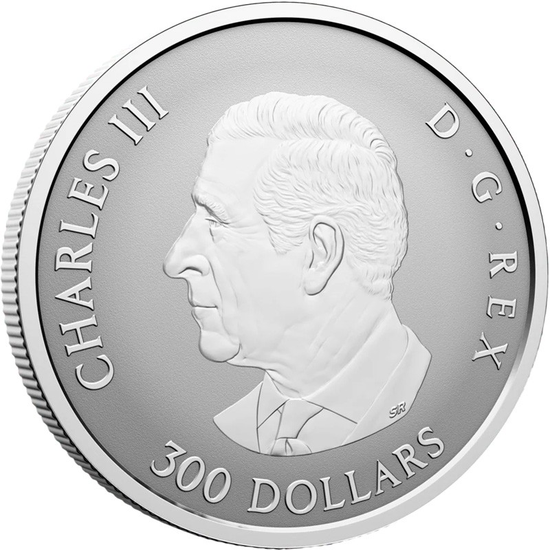 На аверсе изображен Его величество Король Чарльз III работы Стивена Розети. На усечении шеи инициалы дизайнера SR (Steven Rosati). Вдоль канта надпись: CHARLES III D ∙ G ∙ REX 300 DOLLARS 2025 (Чарльз III, Милостью Божией, Король, номинал, год чеканки).