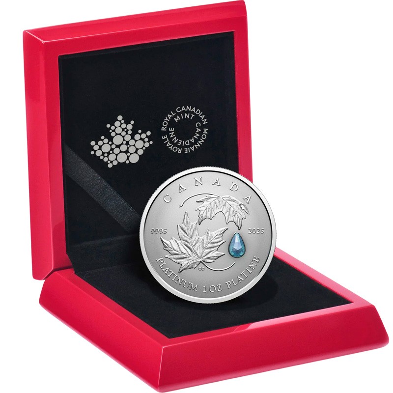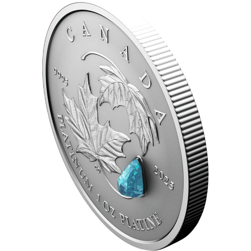 В 2025 Монетный двор Канады году впервые представил платиновую монету «Кленовый лист навсегда» (Maple Leaf Forever), дополненную настоящим драгоценным камнем – аквамарином грушевидной формы с «розовой» огранкой (rose-cut). Вес драгоценного камня составляет 0.23 карата.
