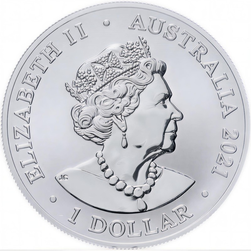На аверсе изображен портрет Её Величества Королевы Елизаветы II с инициалами дизайнера - JC (Джоди Кларк). Вдоль канта надписи: ELIZABETH II ∙ AUSTRALIA 2021 ∙ 1 DOLLAR (королева Елизавета II, страна-эмитент и год чеканки, номинал).