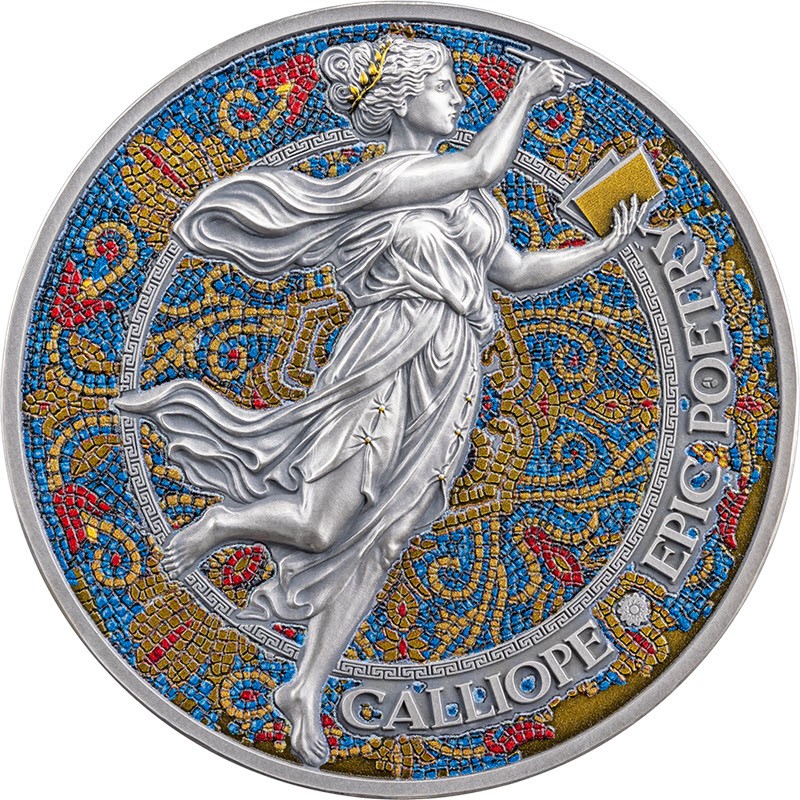 Серебряная монета весом в 2 унции - первая из серии «Девять муз» от польского монетного двора MINT XXI. У нее качество античной отделки, высокий рельеф, выборочное золочение и селективная окраска. Поставляется в оригинальном футляре с сертификатом подлинности. Тираж: 500 штук.