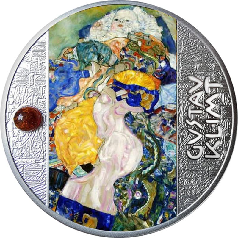 Эта красивая серебряная монета из серии "Густав Климт" с изображением известной картины «Малыш». У монеты красивая вставка из янтаря, она прекрасного цвета и поставляется в витринном футляре вместе с сертификатом подлинности. Ограниченный тираж 555 штук по всему миру.