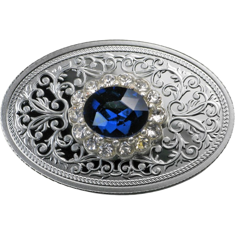 На реверсе – на фоне сложного филигранного узора в центре – синий кристалл в окружении фианитов.