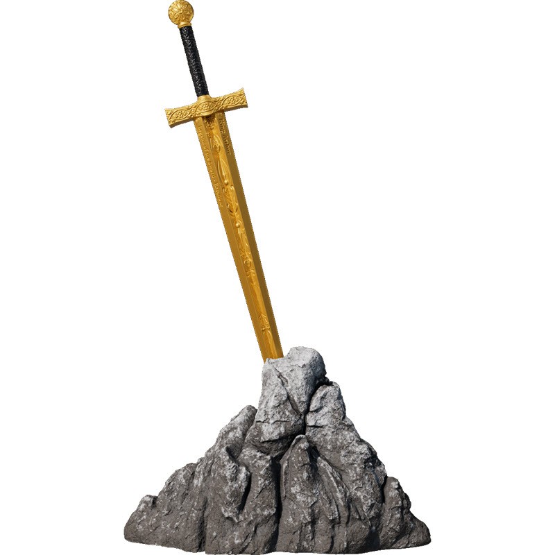 Экскалибур - легендарный меч короля Артура. Существует несколько версий происхождения и получения этого меча. В одной из версий, Артур вытаскивает меч из камня, доказывая свое право на престол. Более распространенная версия гласит, что Экскалибур - это меч, полученный Артуром от Владычицы озера после того, как его меч, вытащенный из камня, был сломан. Мечу приписываются волшебные свойства, способность наносить сокрушительные удары и защищать своего владельца. Экскалибур является символом королевской власти, божественного происхождения власти и величия Артура.