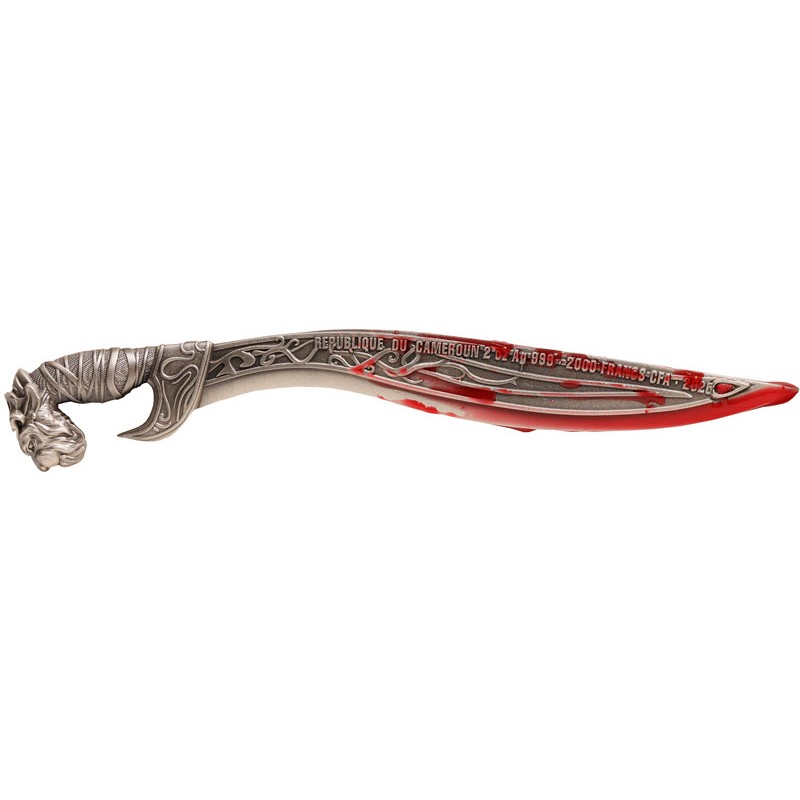 Серебряная монета Камеруна "Легендарное оружие. Копис" 2025 г.в., 62.2 г чистого серебра (проба 999)