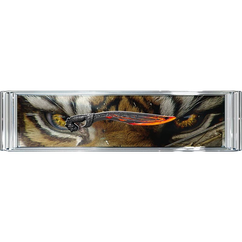 Эта прекрасная серебряная монета весом в 2 унции – третья из серии «Легендарное оружие» - посвящена мечу копису. У нее размеры 125 Х 15 мм, качество античной отделки и селективное УФ-свечение. Поставляется в футляре в акриловом блоке с сертификатом подлинности. Тираж: 498 штук.