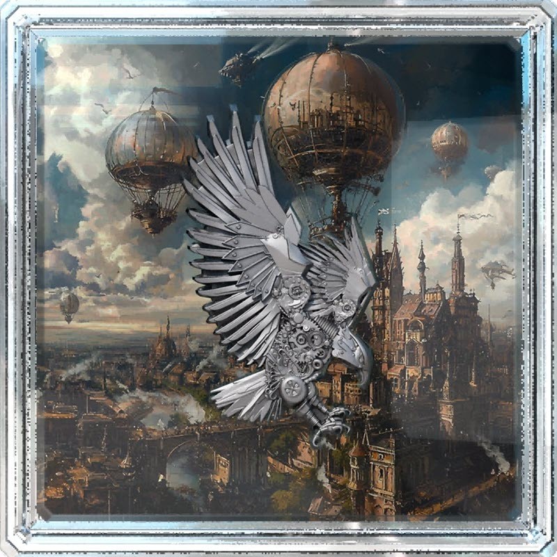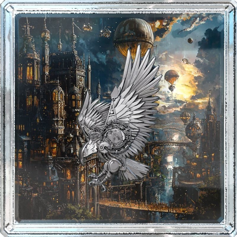 Серебряная монета Камеруна "Стимпанк. Механический орел" 2025 г.в., 62.2 г чистого серебра (проба 999)