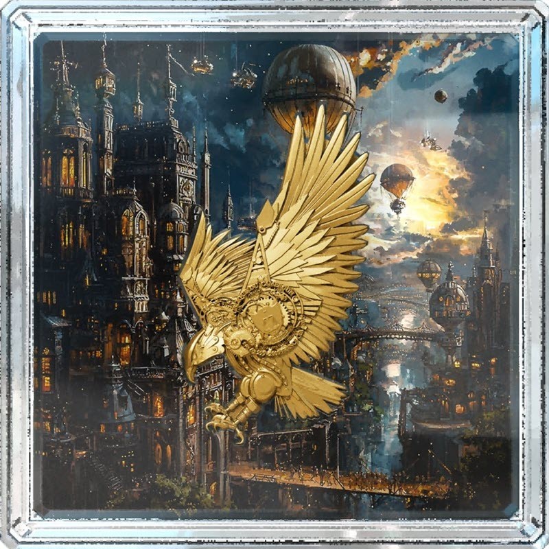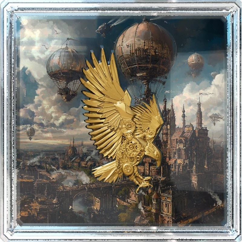 Серебряная монета Камеруна "Стимпанк. Механический орел" 2025 г.в. (с позолотой), 62.2 г чистого серебра (проба 999)