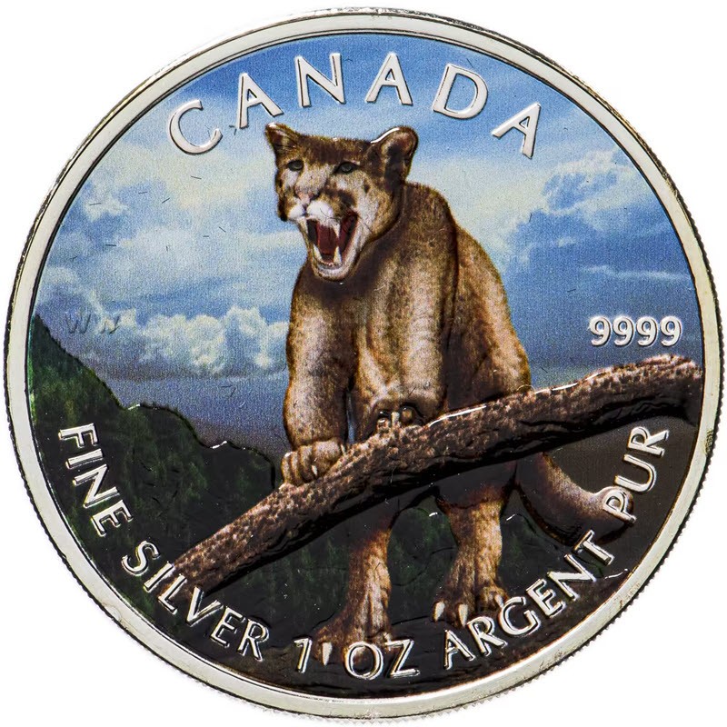 Серебряная монета Канады "Пума" 2012 г.в. (с цветом), 31.1 г чистого серебра (проба 9999)