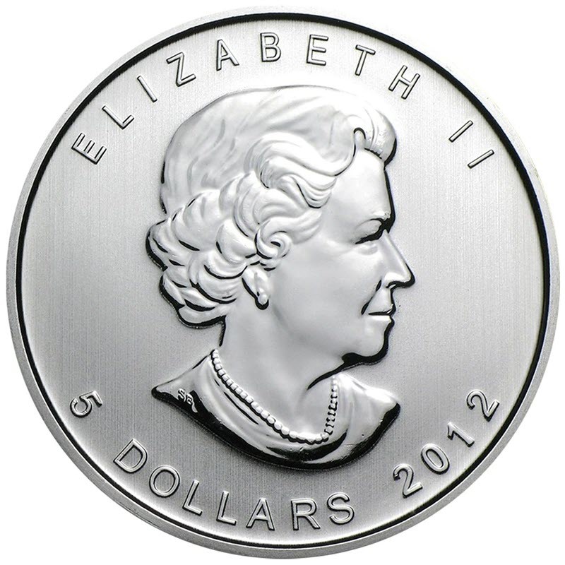 На аверсе изображен портрет королевы Елизаветы II работы Сюзанны Блант (Susanna Blunt). На левом плече королевы инициалы дизайнера SB. Вдоль канта надпись: ELIZABETH II 5 DOLLARS 2012 (Елизавета II, номинал, год чеканки).