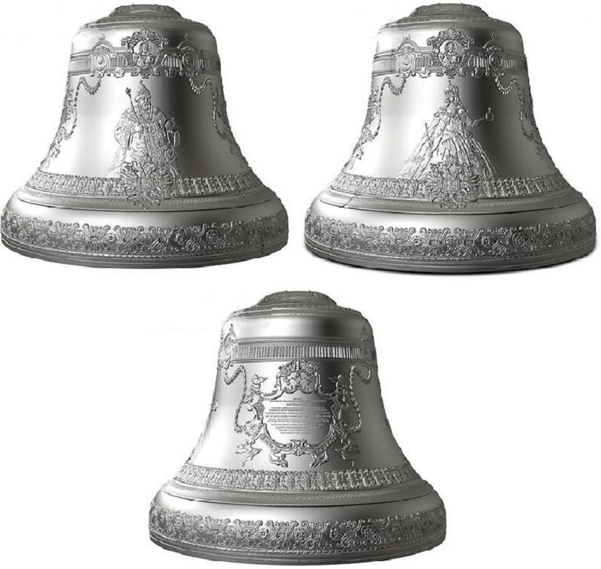 Серебряная монета Ниуэ, выполненная в 3-D модели одной из известных достопримечательностей Московского Кремля — Царь-Колокола. Ограниченный тираж — 999 штук.