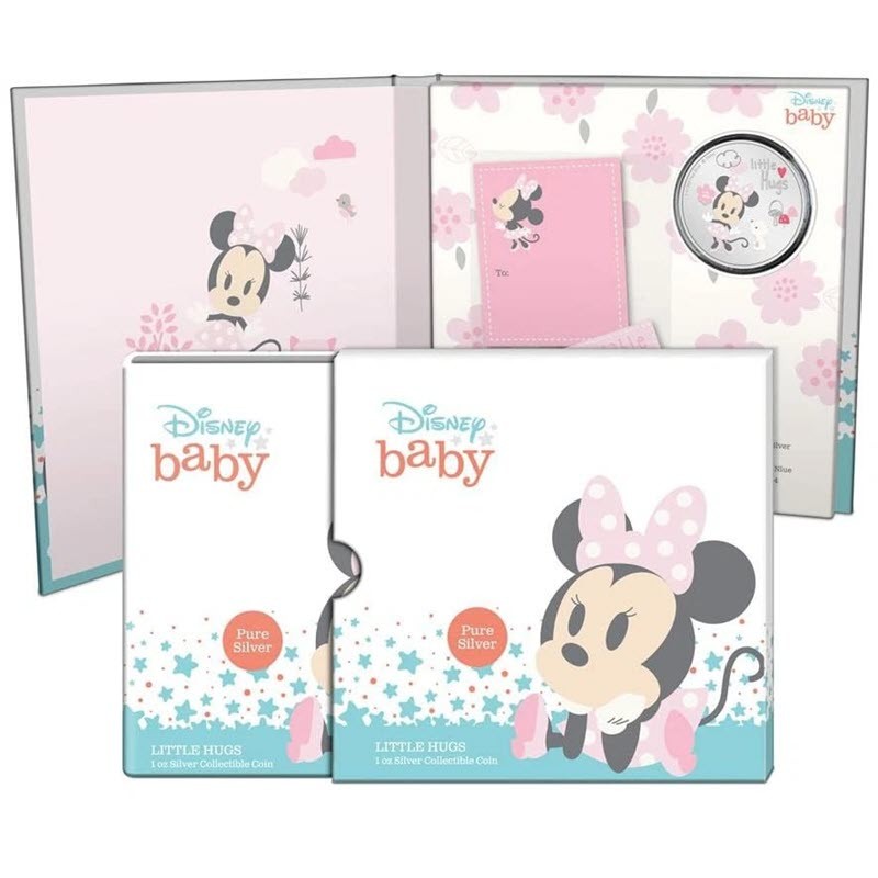 На реверсе изображена Минни Маус. Слева надпись: 1 oz 999 Fine Silver © Disney (вес и проба серебра, логотип компании), справа: Little Hugs (Маленькие объятия).