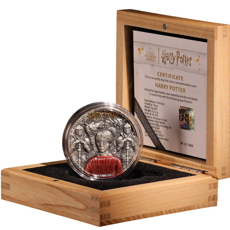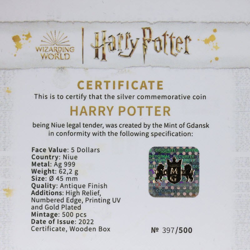 Серебряная монета Ниуэ "Гарри Поттер и философский камень" 2022 г.в., 62.2 г чистого серебра (проба 999)