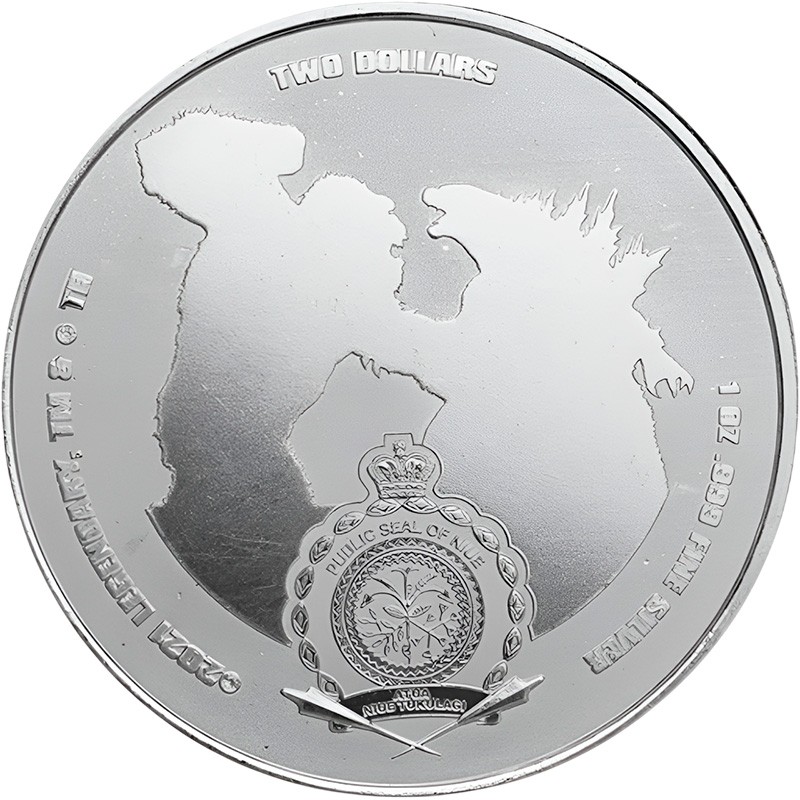 Серебряная монета Ниуэ "Годзилла" 2021 г.в., 31.1 г чистого серебра (проба 999)