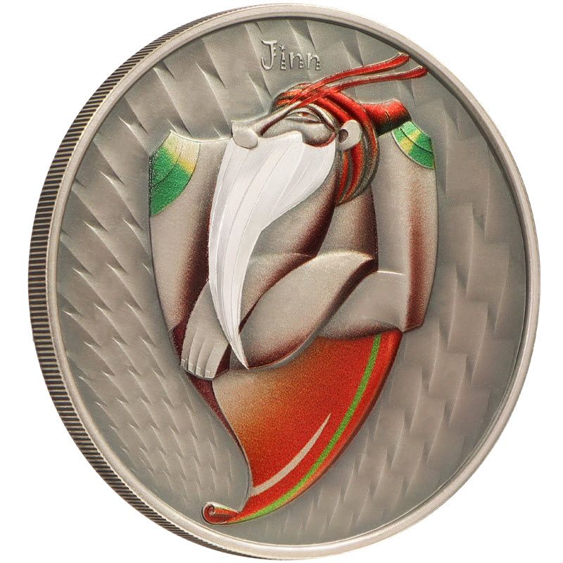 Эта поразительная серебряная монета весом 1 унция - десятая из серии "Мир Криптидов" - посвящена Джину, исполняющему три желания. Монета имеет высокий рельеф, избирательную окраску и качество античной отделки. Она поставляется в футляре с сертификатом подлинности. Тираж: 1.000 штук.