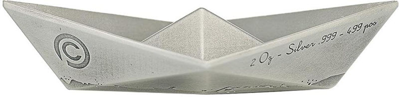 Эта чудесная серебряная монета в 2 унции из серии «Сложенные мечты» посвящена бумажной лодочке. У нее размеры 15 Х 54 Х 90 мм и качество античной отделки. Поставляется в оригинальном футляре с сертификатом подлинности. Тираж: 499 штук.