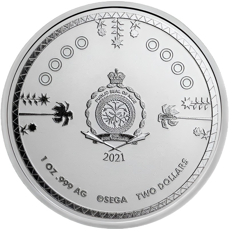 На аверсе в центре - герб Ниуэ. Это композиция из растений в центре, внутри двойного декоративного круга, окруженного морскими раковинами. Он увенчан короной Святого Эдуарда (символом Соединенного Королевства, монарх которого в конечном итоге является главой государства Ниуэ). Сверху между ними надпись PUBLIC SEAL OF NIUE. Ниже на ленте в две строки изображен девиз ATUA NIUE TUKULAGI, ниже - две перекрещенные катуа. Под гербом год чеканки – 2021. Герб окружен декоративными элементами из игры Sega «Sonic the Hedgehog». Внизу вдоль канта надписи: 1 OZ .999 AG ©SEGA TWO DOLLARS (вес и проба серебра, обозначение авторских прав, номинал).