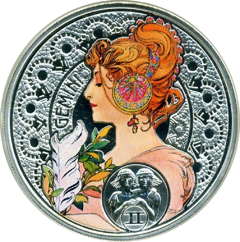 Серебряные памятные монеты из серии «Зодиак Альфонса Мухи» в связи со 150-летием великого художника.