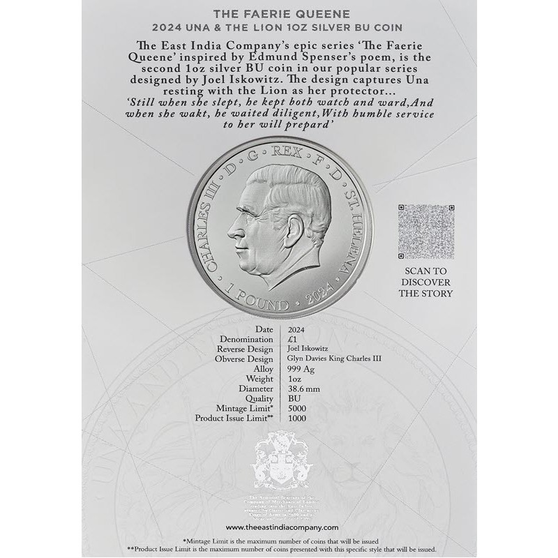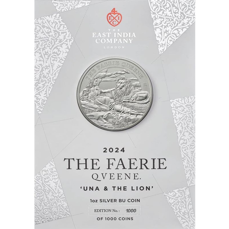 Серебряная монета Острова Святой Елены "Королева фей. Уна и Лев" 2024 г.в., 31.1 г чистого серебра (проба 999)