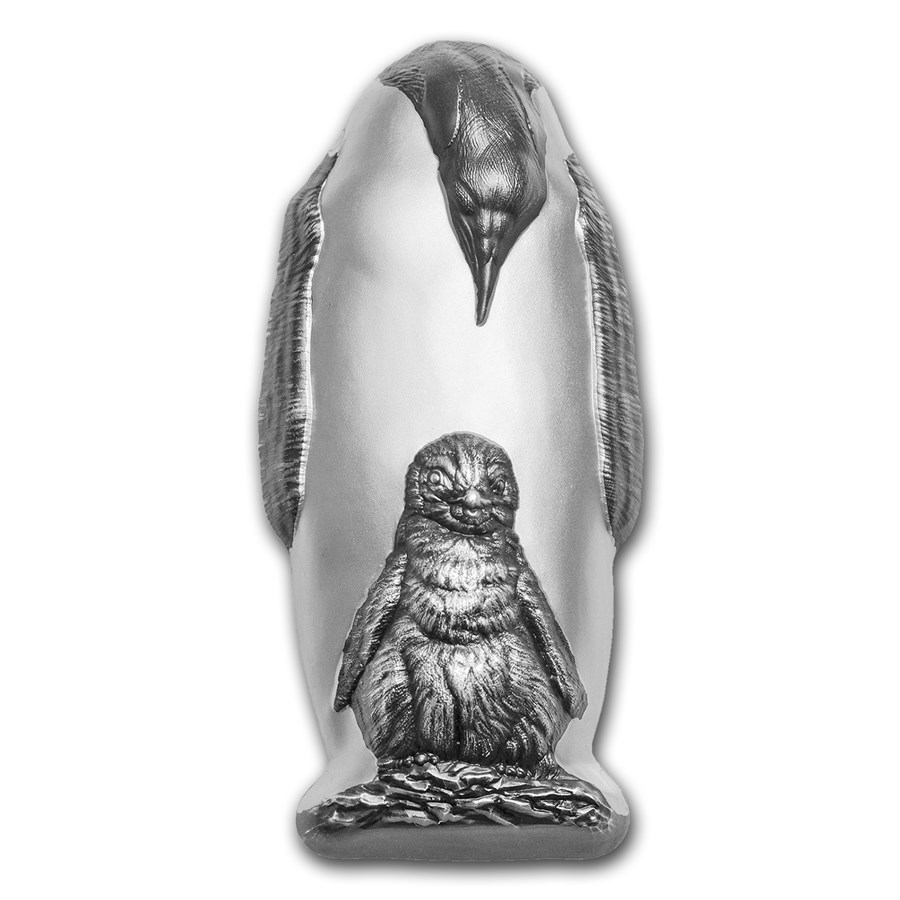 Серебряная монета, выполненная в форме пингвина с птенцом. Ограниченный тираж.