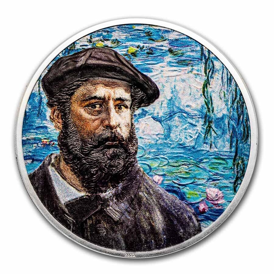 Серебряная монета Островов Кука "Мастера искусства: Клод Моне" 2023 г.в., 62.2 г чистого серебра (Проба 999)