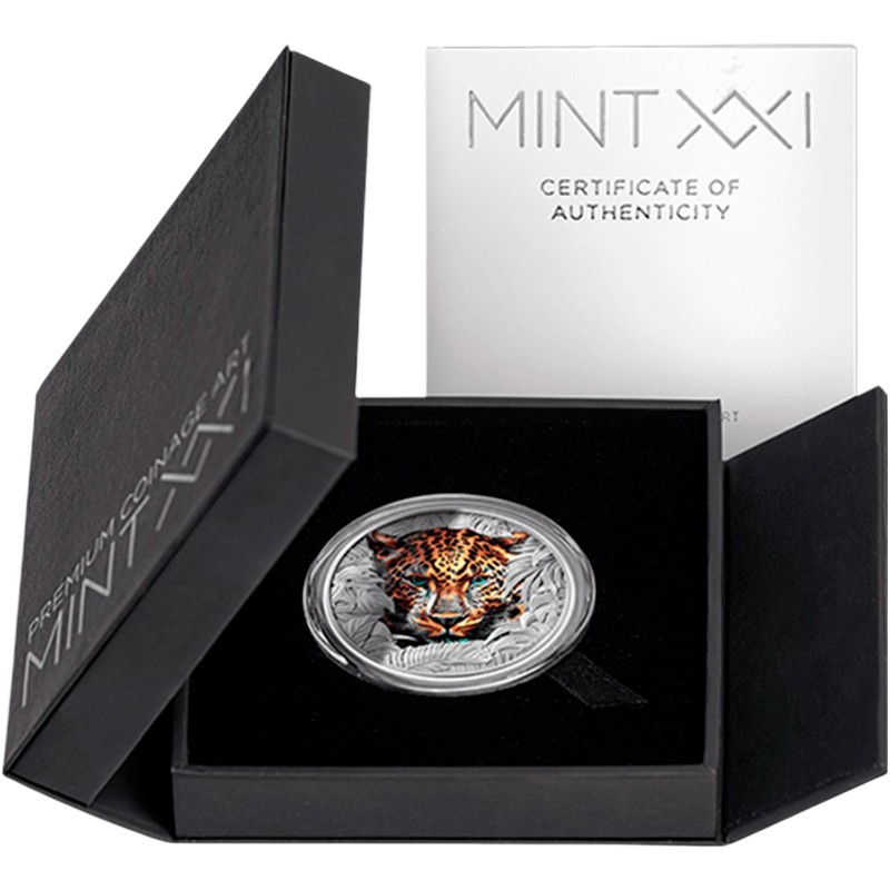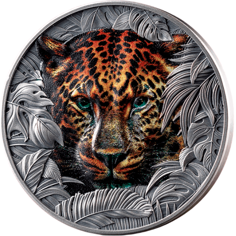 Эта удивительная 1 унцовая серебряная монета «Леопард» открывает новую серию  – «Рожденные быть дикими». Леопард запечатлен в момент перед прыжком. Его завораживающий взгляд воплощает сущность высшего хищника и символизирует невидимую силу природы, царящую в густых лесах.