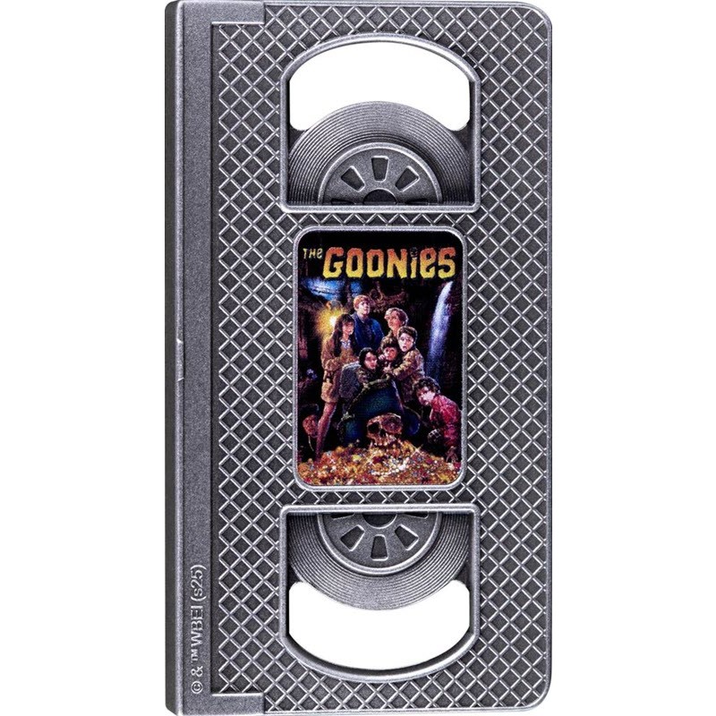 На реверсе изображен момент, когда Балбесы обнаруживают сокровище Одноглазого Вилли. Вверху надпись: THE GOONIES (Балбесы), слева внизу: © & TM WBEI (s25) (логотип).