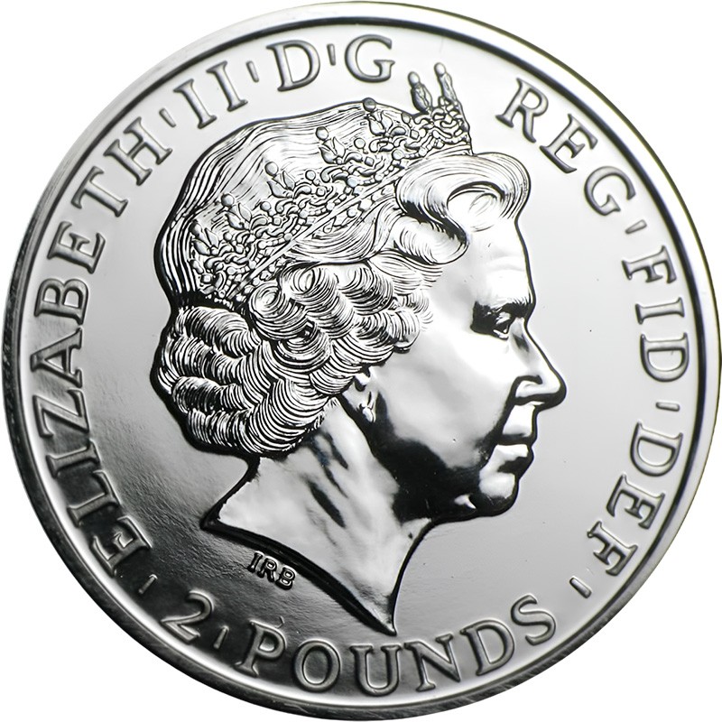 В центре монеты - портрет королевы Елизаветы II работы дизайнера Яна Рэнк-Бродли. Вдоль канта по кругу надписи: ELIZABETH ∙ II ∙ D ∙ G  REG ∙ FID ∙ DEF ∙ 2 ∙ POUNDS ∙ (Елизавета II, милостью Божией, Королева, Защитница Веры; номинал).