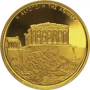 Золотая монета Греции "Олимпиада в Афинах. Афинский Акрополь" 2004 г.в., 10 г чистого золота (проба 0,9999)