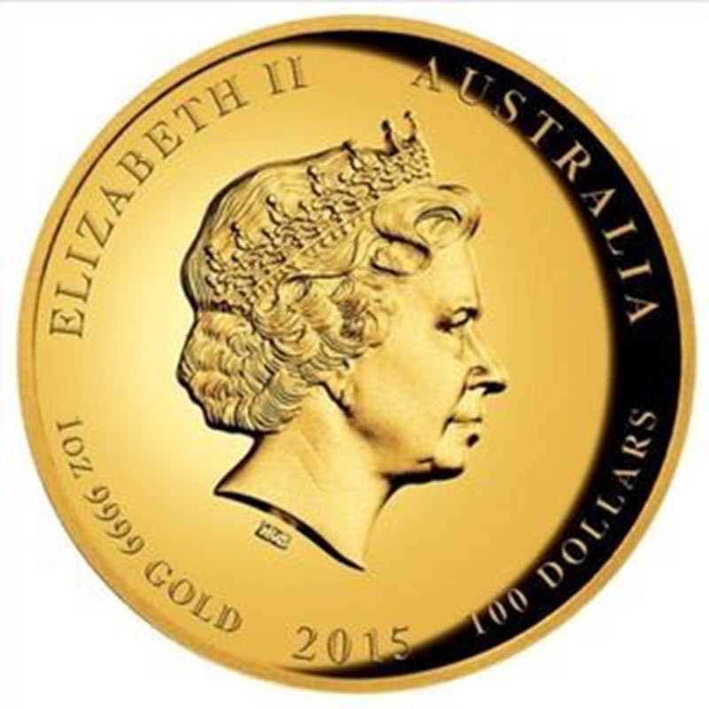 Золотая монета Австралии "Большая белая акула" 2015 г.в., 31.1 г чистого золота (Проба 9999)