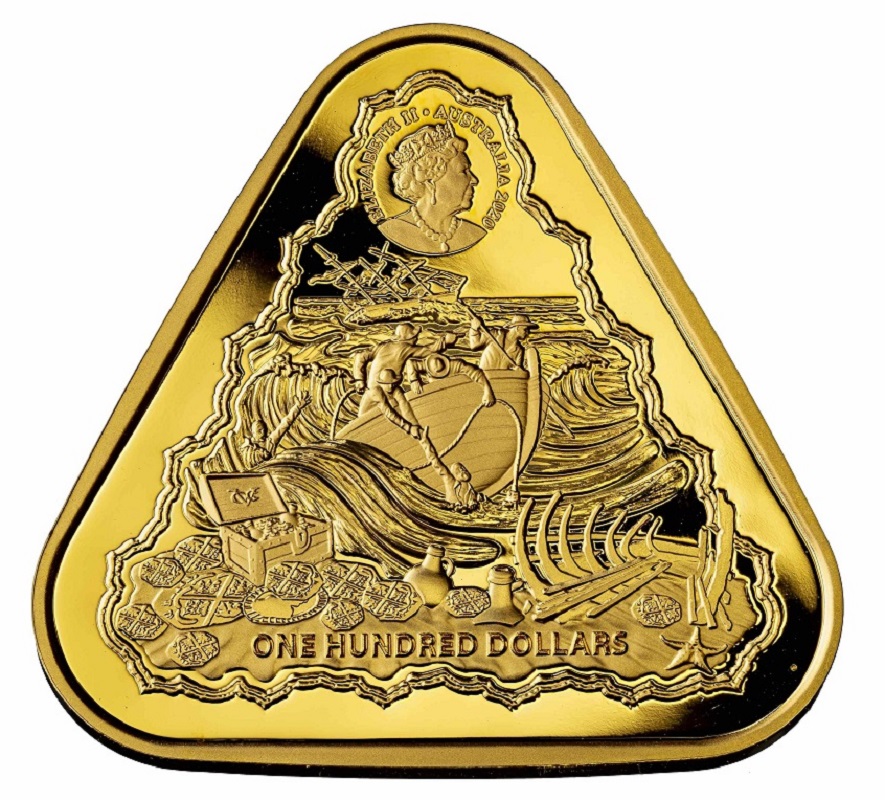 Золотая монета, выполненная в форме треугольника, от Королевского монетного двора Австралии.